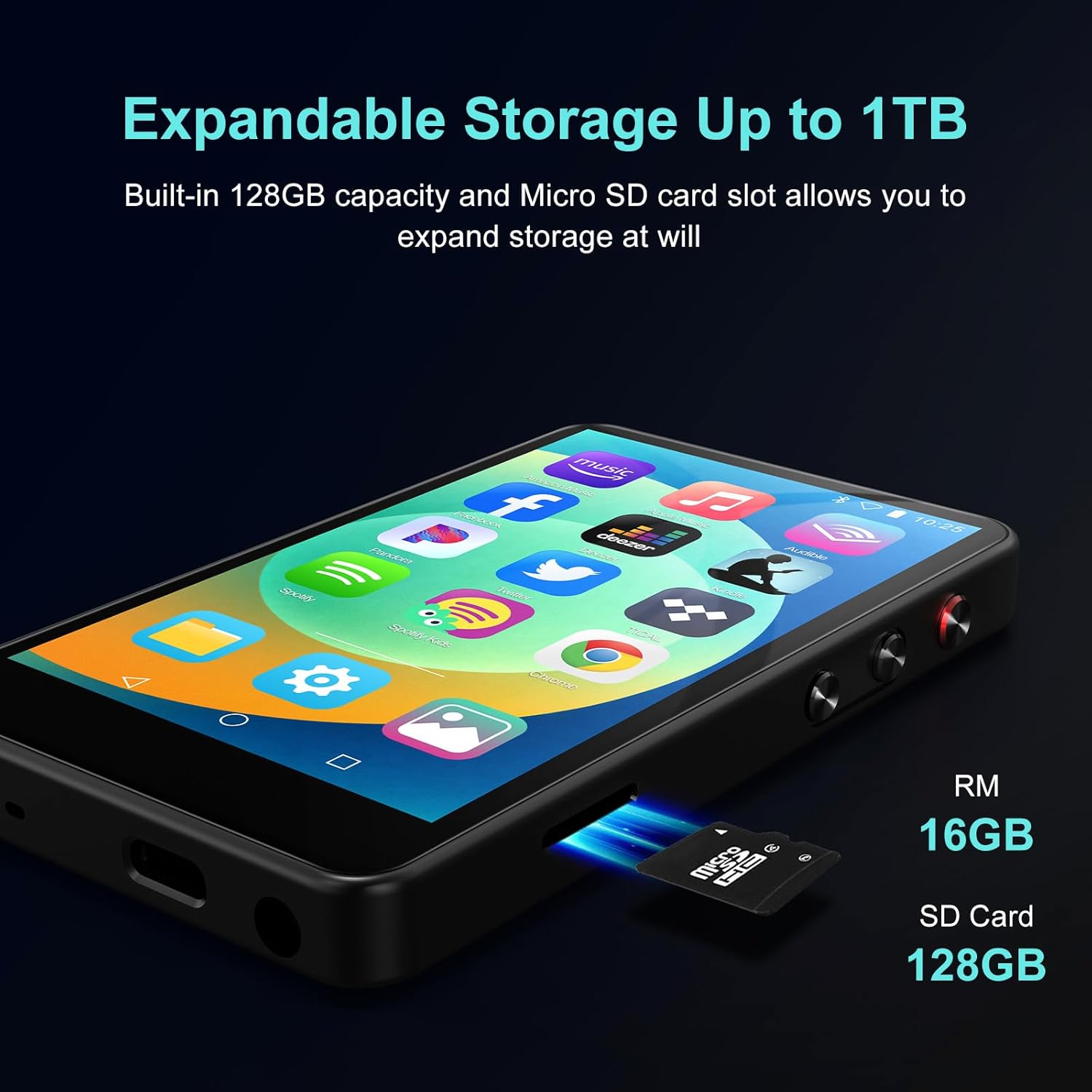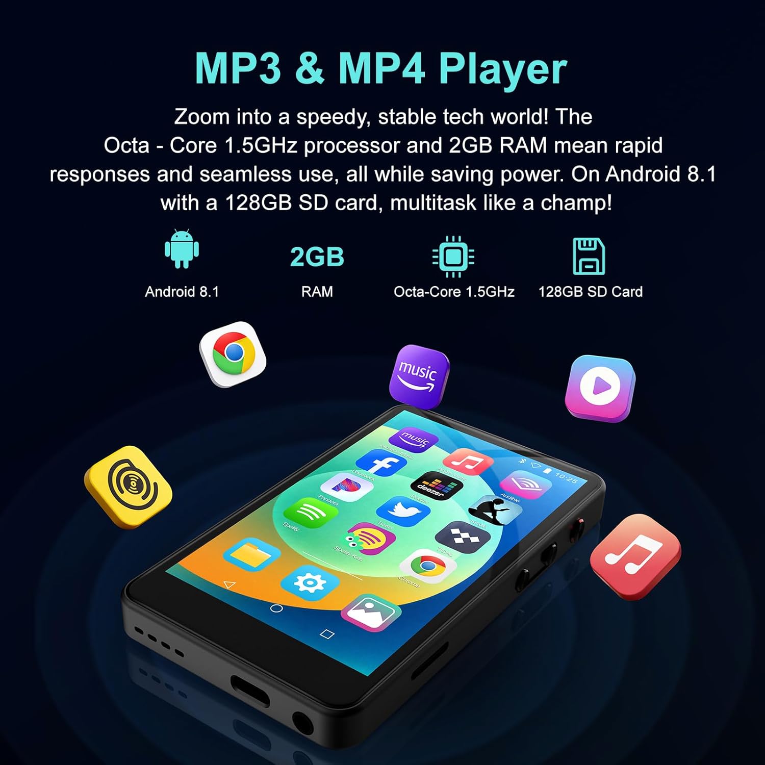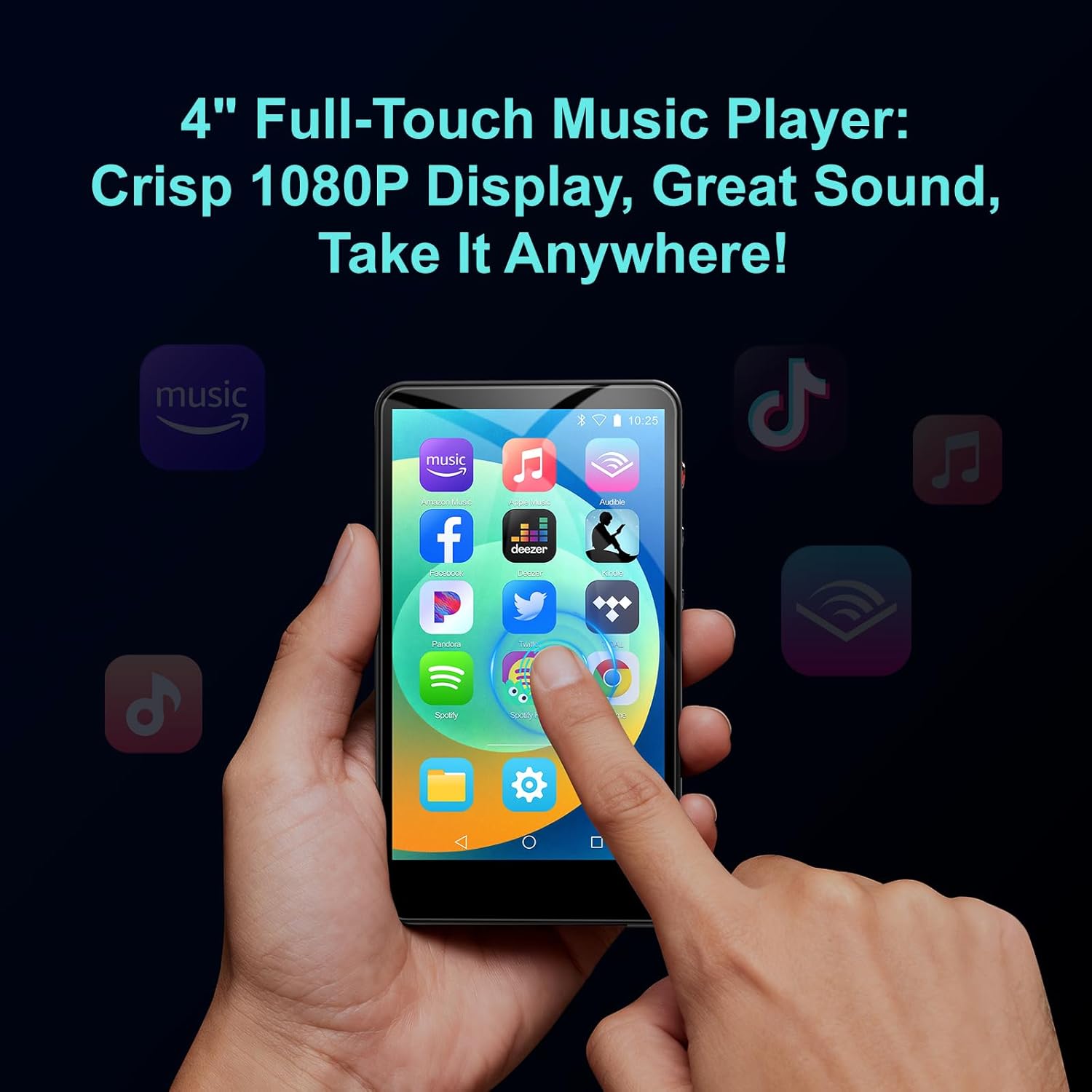 144GB MP3 Player with Bluetooth and WiFi, 4IN HD Full Touch Screen MP3 & MP4 Music Player with Spotify, Libby, Amazon Music,YouTube,Tiktok, E-Book, MP4 Player for Kids Up to1TB