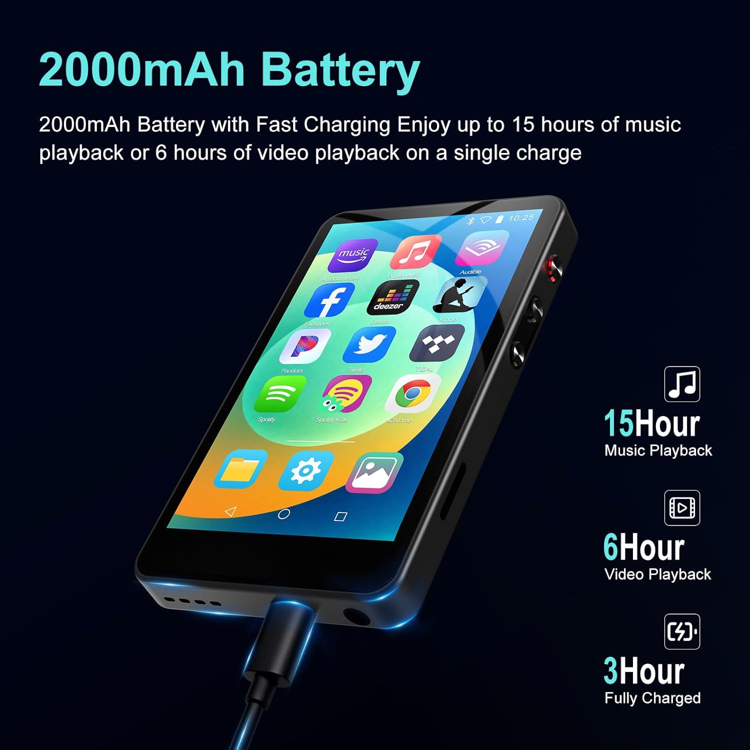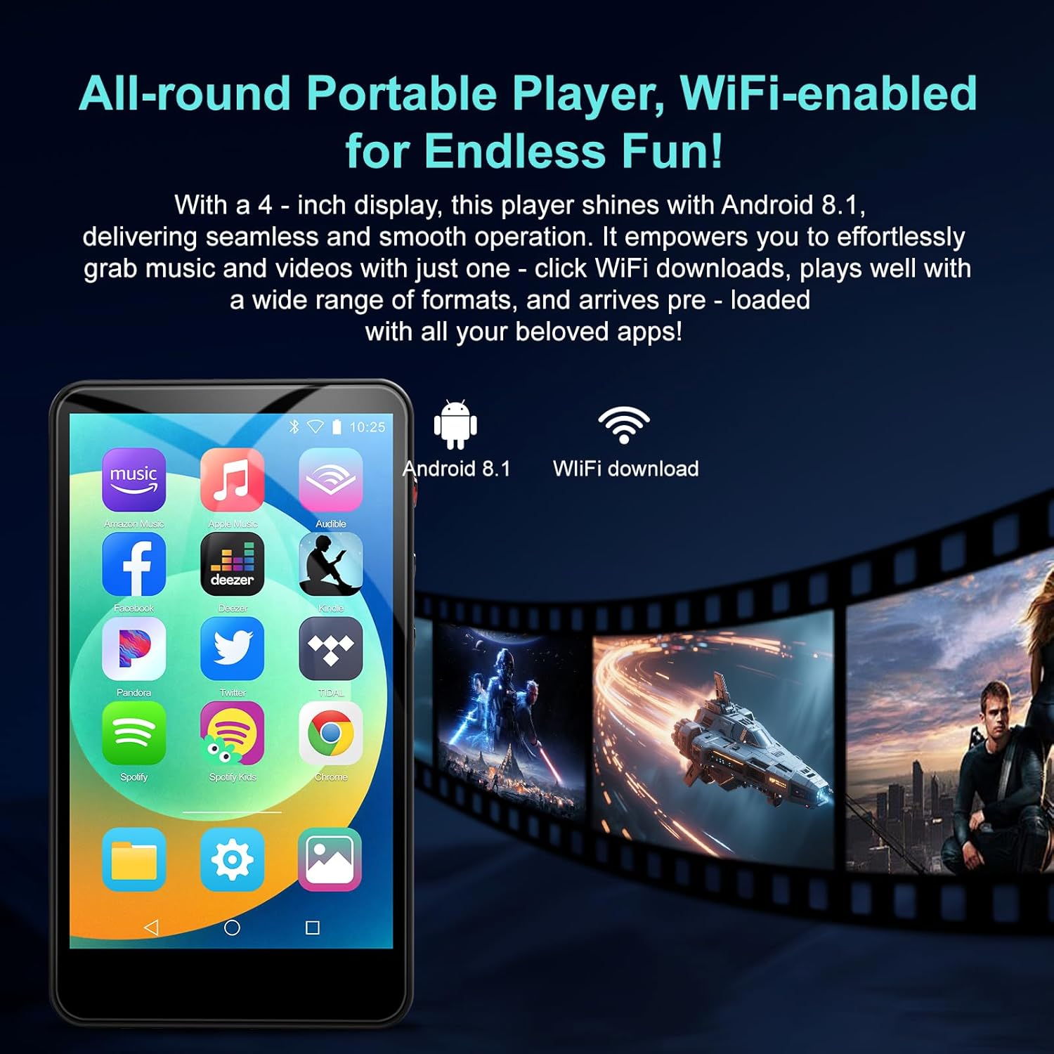 📶 Seamless Connectivity:This mp3 player with Bluetooth and WiFi is a standout among mp3 & mp4 players. It supports Bluetooth 4.2 and WiFi connectivity, enabling effortless pairing with Bluetooth headphones, car stereos, or smartphones. Its stable, lag – free streaming experience lets you enjoy the allure of music and videos anytime, anywhere, whether at home, outdoors, or on your travels