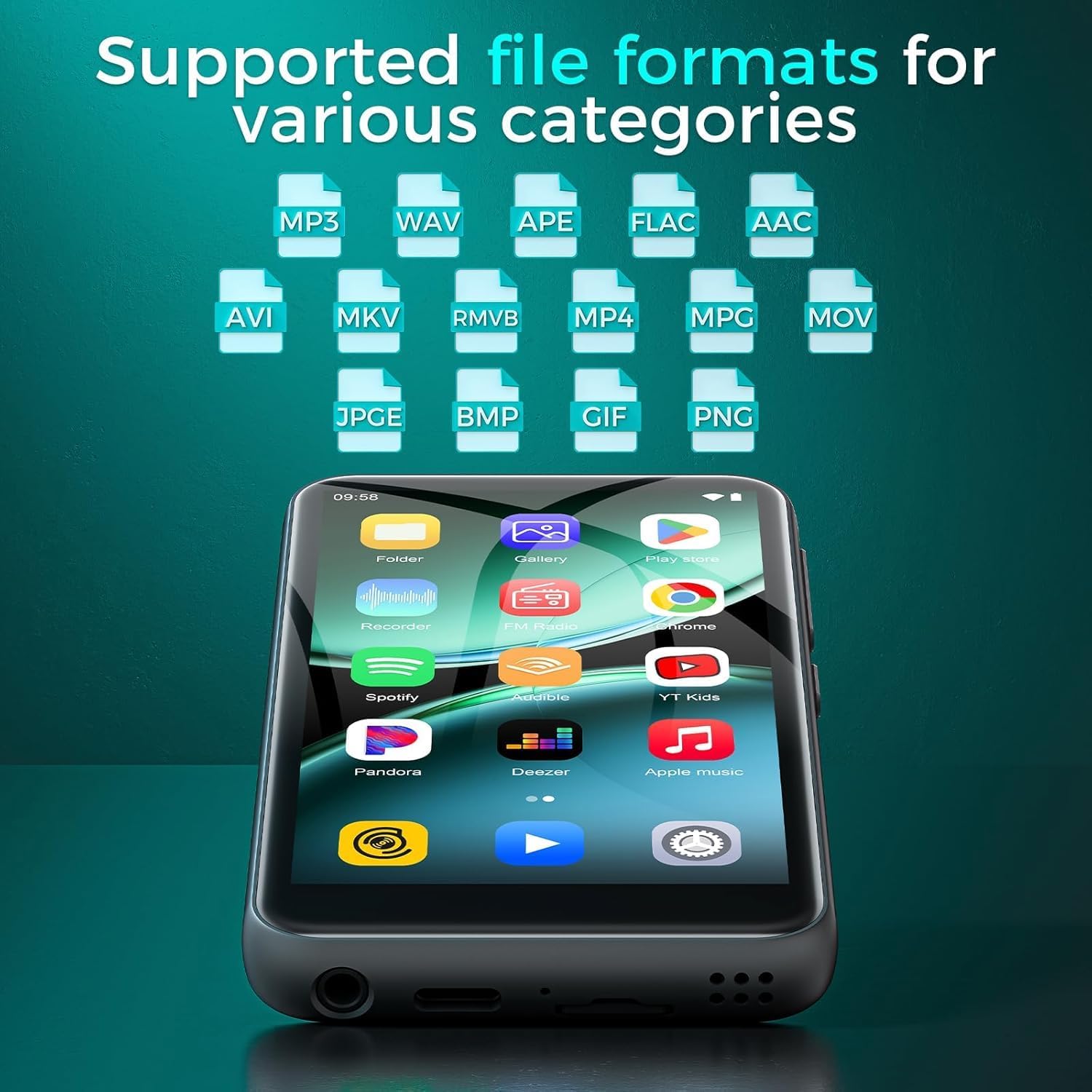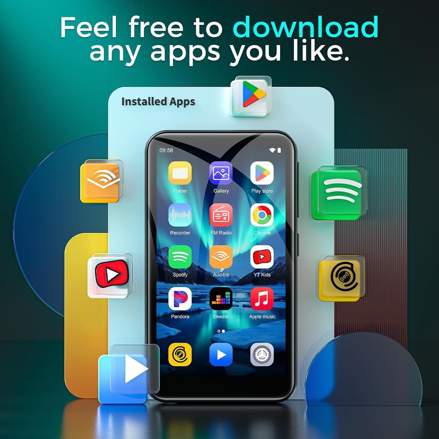 🎅【Bluetooth 5.0 & Dual-Band Wi-Fi 】Equipped with Bluetooth 5.0, dual-band Wi-Fi, and USB-C fast charging, this MP3 player ensures stable, high-speed connections. Pair seamlessly with wireless headphones, speakers, or car stereos for immersive sound without tangled wires; connect to Wi-Fi for online music streaming (Spotify, Amazon Music), audiobook downloads (Audible).