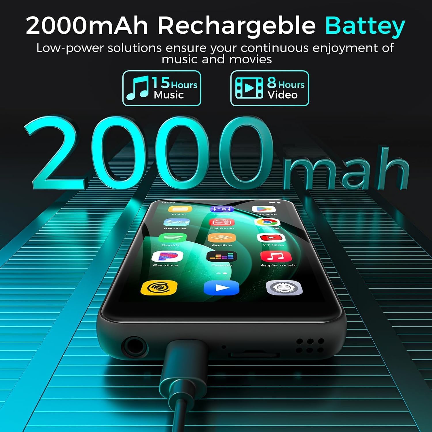 🎅【2000mAh Long-Lasting Battery】Powered by a 2000mAh high-density battery and Android 13’s energy-saving technology, this portable music player offers up to 35 hours of continuous lossless music playback or 10 hours of 1080p video viewing on a single charge. Fast-charge via USB-C to get back to your tunes in no time—perfect for long commutes, road trips, gym sessions, or international travel. Never miss a beat due to dead battery again!