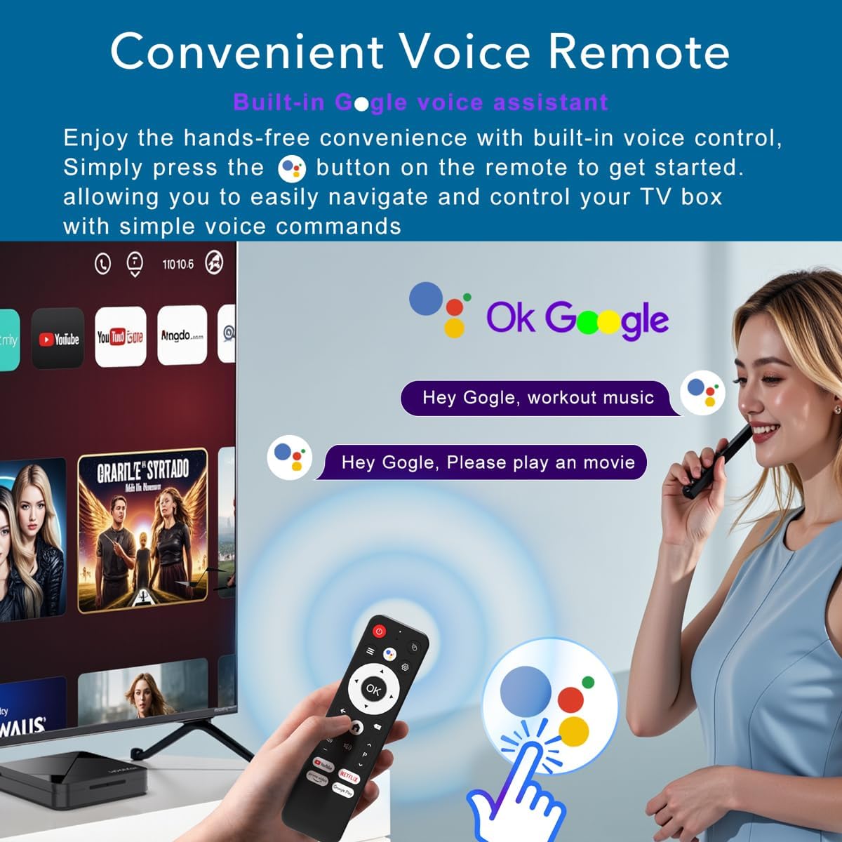 Intuitive Voice Control – The included BT5.4 remote control lets you navigate hands-free – simply speak to search content, adjust settings or launch apps, making your streaming experience more convenient than ever.