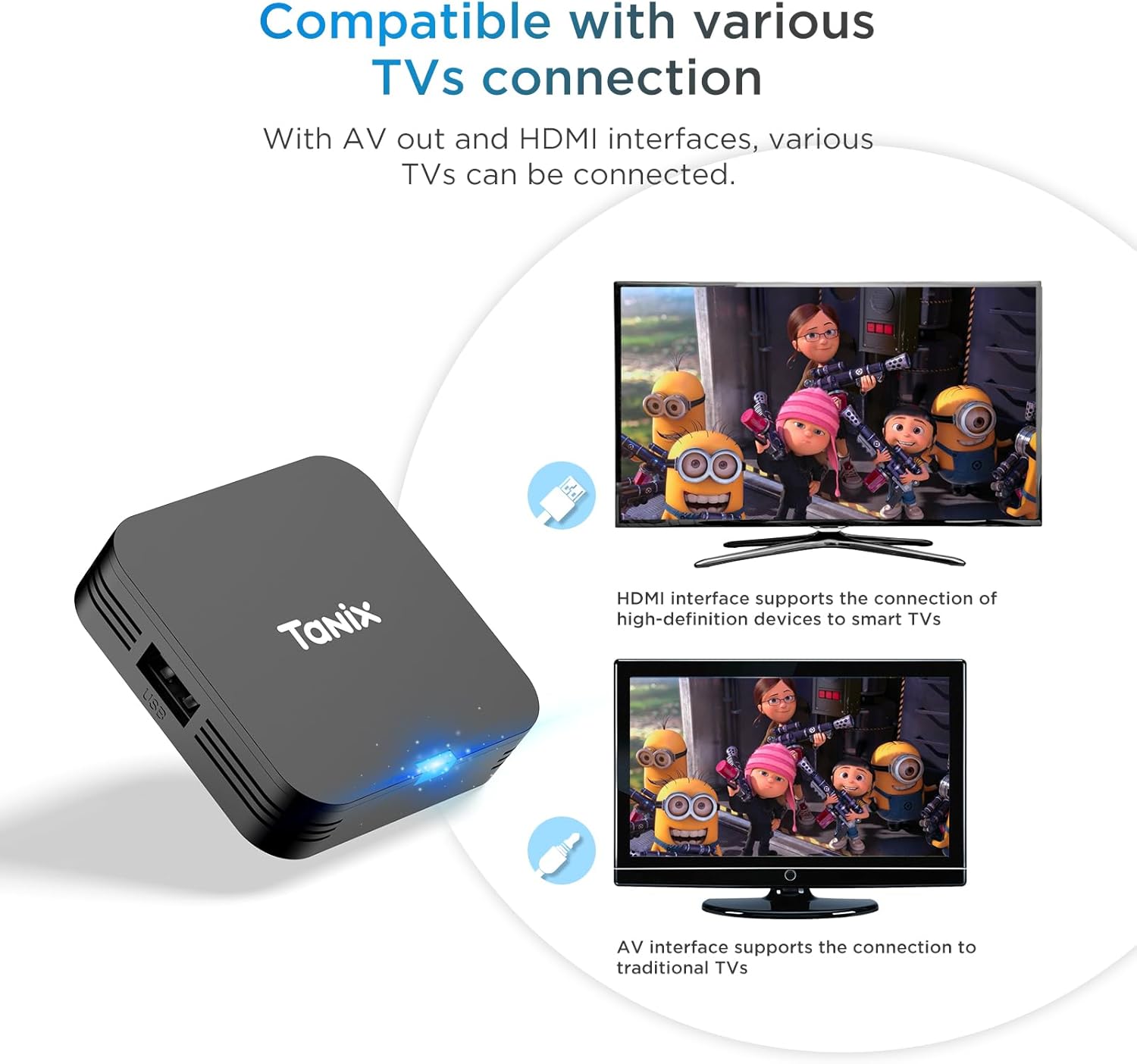【Android 10.0 & H313 Chipset】Android box tv mini is operated by Android 10.0 system, and Allwinner H313 Quad Core ARM Cortex A53 CPU, which has a good stability and process speed, providing better compatibility and user experience.