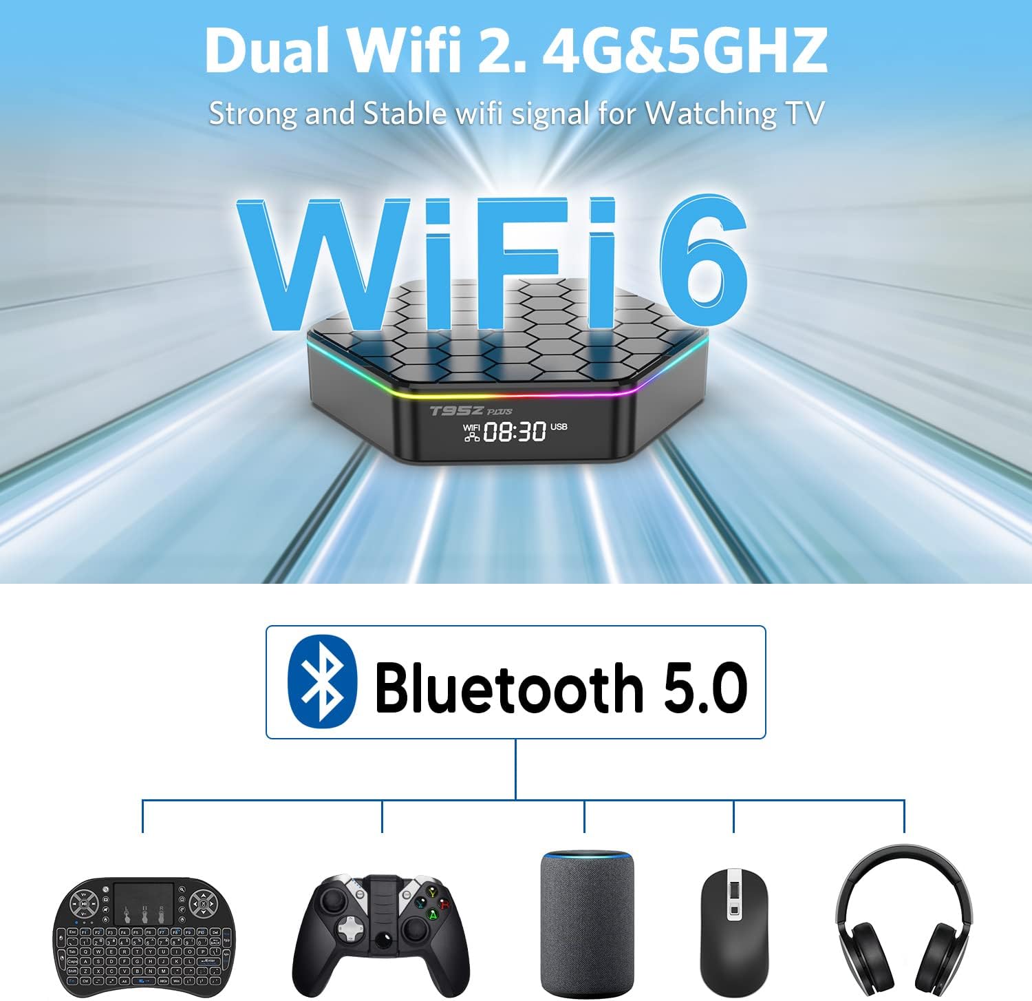 Android TV Box 12.0,T95ZPLUS H618 2GB RAM 16GB ROM with Backlit Mini Wireless Keyboard Quad-Core Cortex-A53 CPU,2.4GHz/5GHz Dual Band WiFi6 6K Ultra HD Resolution Bluetooth 5.0