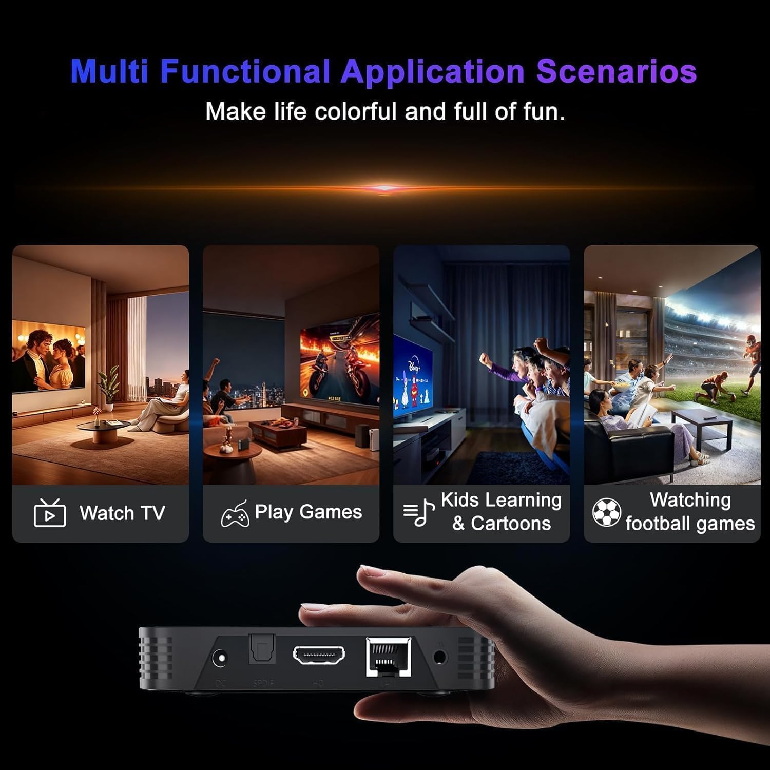 【Vivid 4K HDR Viewing】Transform your TV into a home theater with this tv moving box. Supporting 4K Ultra HD resolution and advanced H.265 decoding, it delivers breathtaking detail and vibrant colors, making every scene come alive with efficient bandwidth usage.