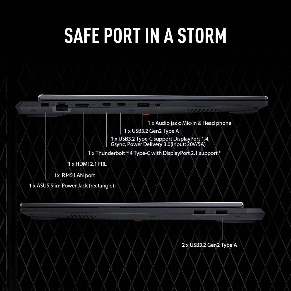 RTX 4050 Laptop: ASUS TUF gaming laptop RTX 4050 for fluid gameplay paired with smooth, tear-free frame rates.