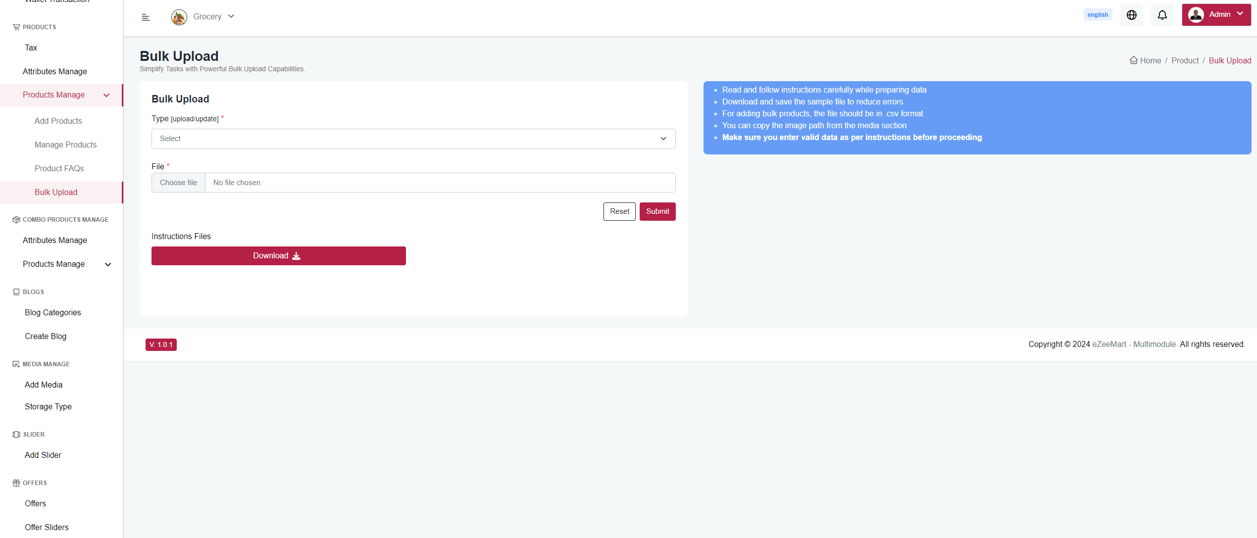- Step 3: Open your ezeeMart admin panel and navigate to Settings > System Updater