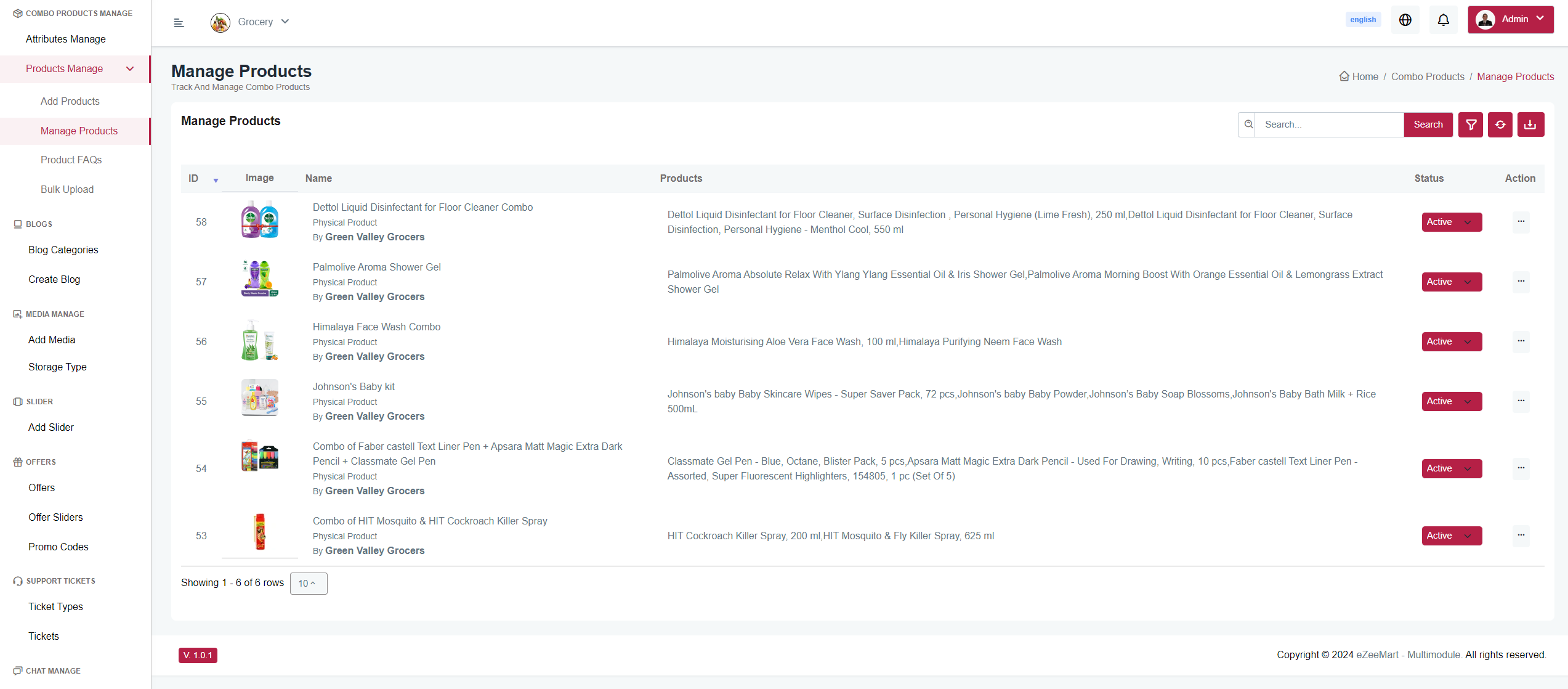 You can create a product that contains basic details like name, description, category, brand, origin ,physical or digital product, tax information, and image. Additionally, you can set product deliverability and shipping settings, manage stock of products, and create variable products